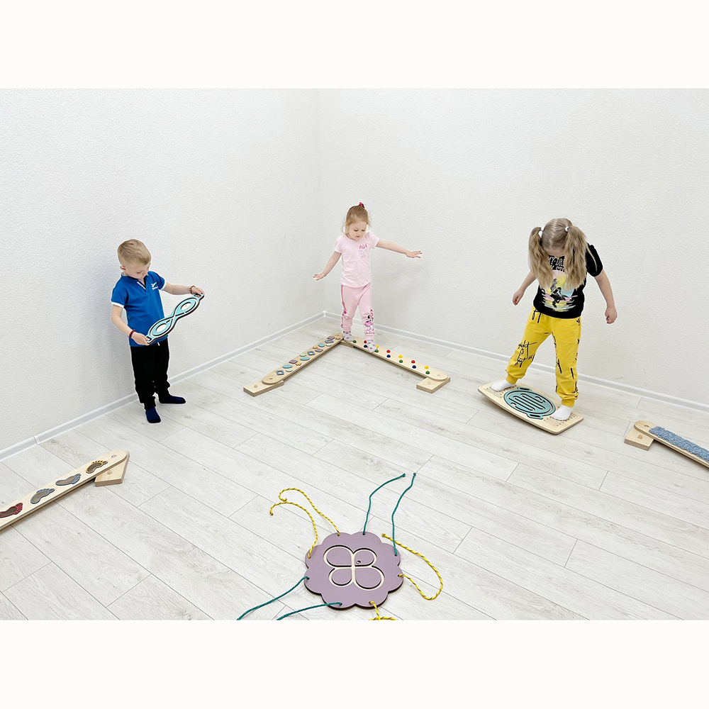 Сенсорные балансировочные мостики – конструктор из 10 троп, 10 брусков и 2 стартовых блока, применяется для развития равновесия, координации движения, профилактики сколиоза и плоскостопия у детей. Разный рельеф и материал покрытия мостиков служит развитию сенсорной чувствительности и стимуляции рефлекторных точек на ногах.