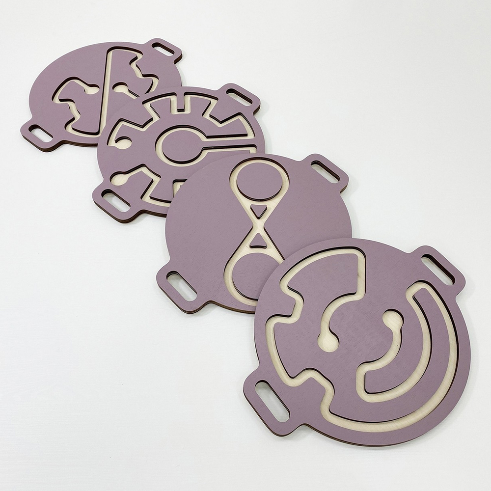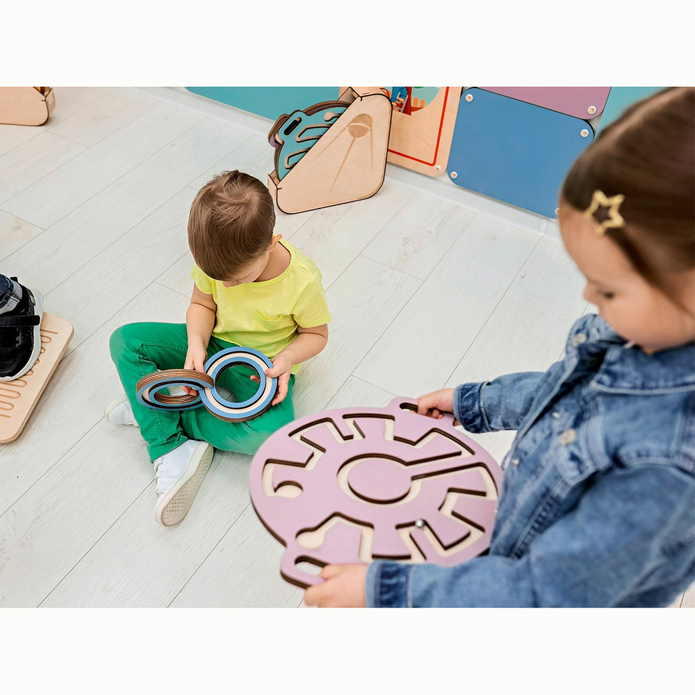 Это игровой тренажёр для развития мозга и координации движений. На круглой доске с двумя ручками по бокам выполнен лабиринт, по которому нужно прокатить шарик с помощью согласованных движений рук.