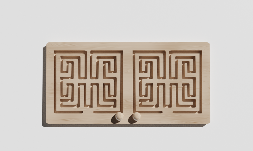• Предложите малышу провести шарик по правому лабиринту правой рукой, а потом то же самое сделать левой рукой, по левому лабиринту.