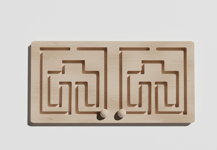 • Предложите малышу провести шарик по правому лабиринту правой рукой, а потом то же самое сделать левой рукой, по левому лабиринту.