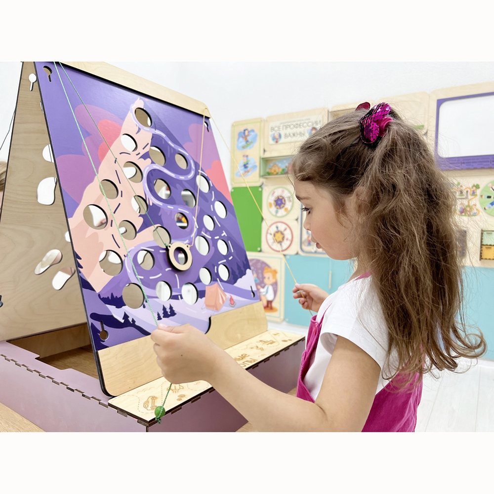 Обойти все препятствия-дыры очень непросто, для этого надо координировать работу сразу двух рук, что стимулирует нейронное взаимодействие больших полушарий головного мозга и связанные с ними высшие психические функции. Дети не только становятся более ловкими и внимательными, но и легче осваивают чтение, письмо, решение логических задач.