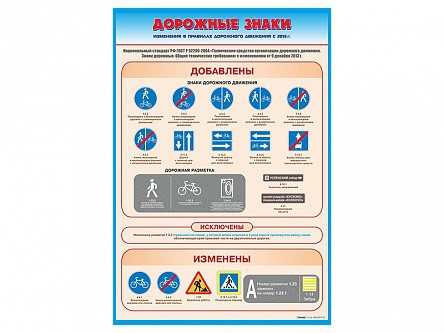 Главная Каталог Стенды ПДД Стенд "Дорожные знаки: изменения в Правилах дорожного движения РФ"