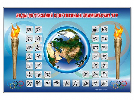 Магнитно-маркерная доска представляет собой панель с элементами основных олимпийских состязаний.