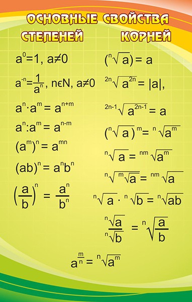 Стенд "Основные свойства степеней и корней