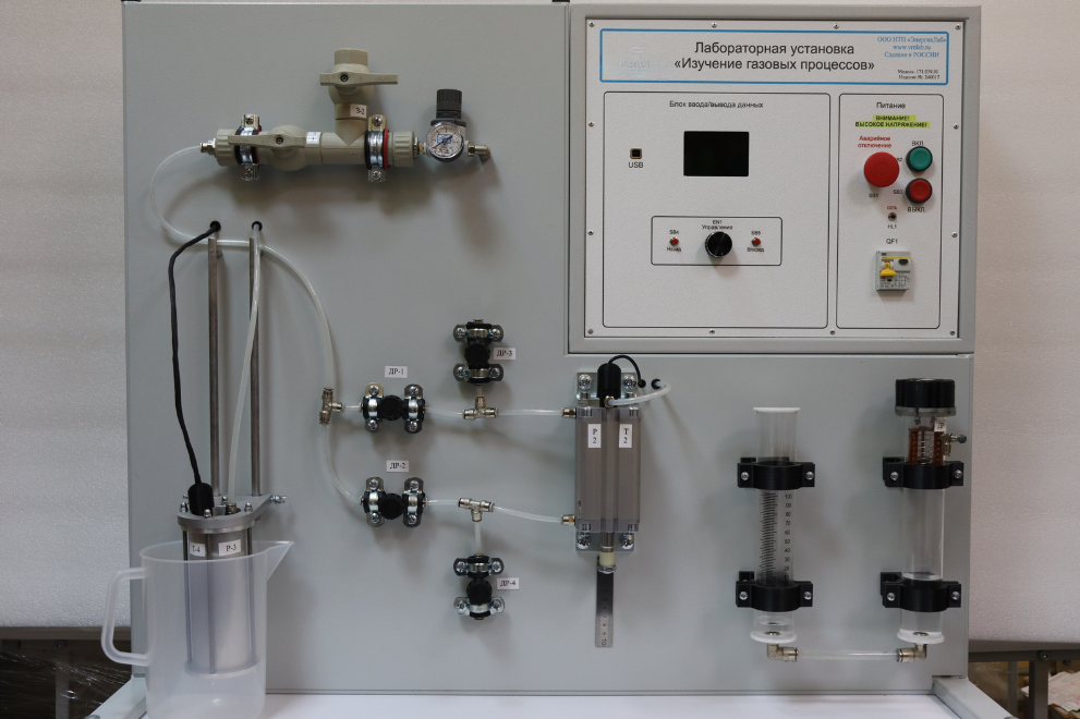 Установка предназначена для проведения лабораторных работ для студентов, обучающихся в высших и средних учебных заведениях. Установка позволяет изучить процессы, при котором один из параметров газа остается постоянным. Установка выполнена согласно ТУ 32.99.53–001–09519063– 2019 и имеет соответствующий сертификат производителя ГОСТ Р и сертификат качества ИСО 9001-2015 на данный вид продукции.