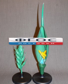 В комплект входят 2 модели: - соцветие пшеницы - сложный колос (состоит из 7 колосков); - увеличенный цветок пшеницы (состоит из 3 частей). Модели изготовлены из пластмассы и установлены на пластмассовые подставки. Высота модели цветка пшеницы не менее 55 см.