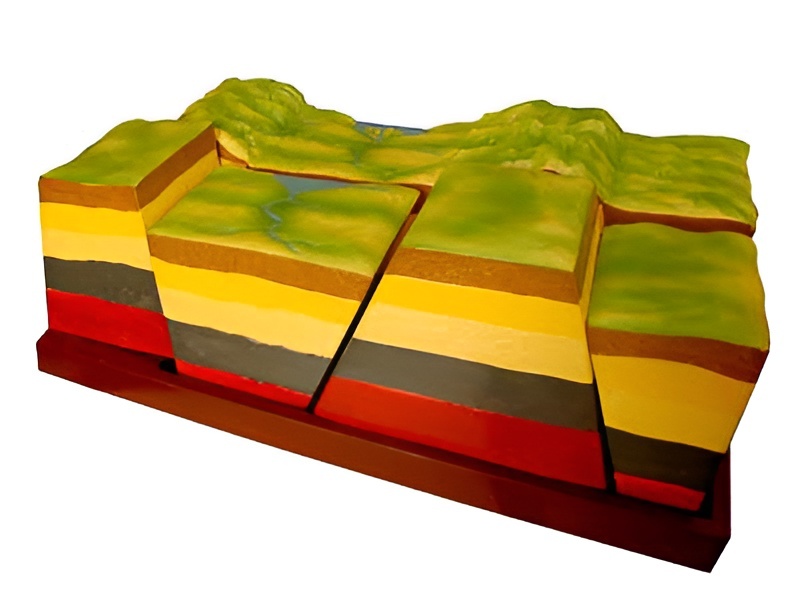 Представляет собой красочную разрезную модель участка земной коры, на которой виден сдвиг земных пород.