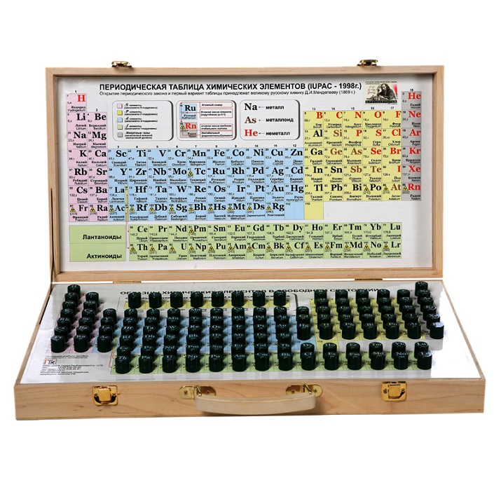 Набор химических элементов Периодической системы демонстрационный (в ампулах) предназначен для изучения внешнего вида и структуры простых веществ в соответствии с Периодической системой элементов Менделеева.