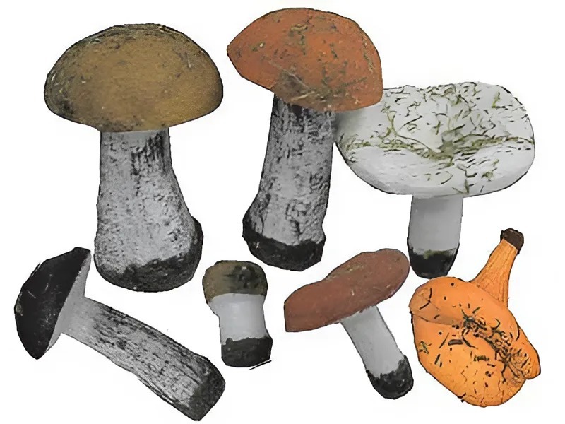 В наборе представлены муляжи плодовых тел грибов.